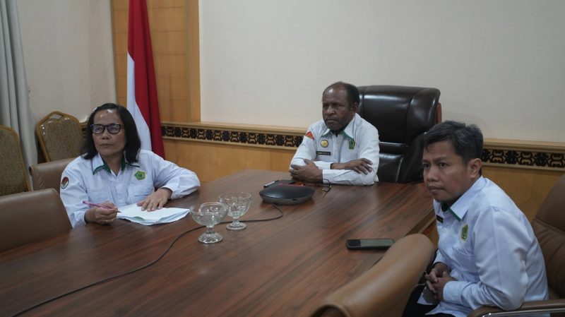 Dari Jayapura, jajaran pimpinan Kanwil Kemenag Provinsi Papua turut berpartisipasi secara daring melalui Ruang Rapat Amsal Yowei. Hadir dalam kesempatan tersebut Kakanwil Kemenag Provinsi Papua, Klemens Taran, didampingi Plt. Kabag TU, Dwiharjanto, dan Ketua Tim Ortala dan Kerukunan Umat Beragama (KUB), Elisabeth Maru Todingbunga.