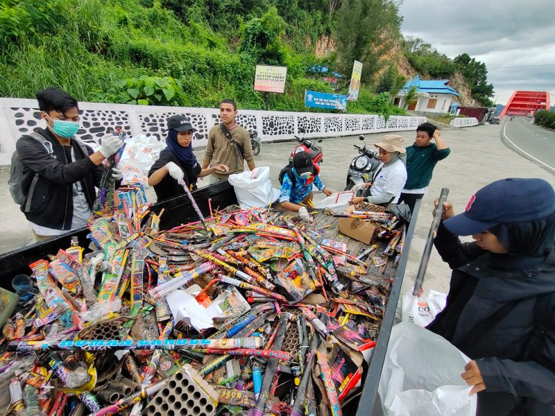 Aksi ini bertujuan membersihkan sisa sampah pasca perayaan malam pergantian tahun baru 2024- 2025, yang terdiri dari botol kaca, petasan mercon, dan berbagai jenis limbah lainnya.