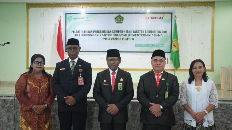 Kakanwil Kemenag Papua Lantik Dua Pejabat Administrator, Tekankan Tata Kelola dan Integritas Pelayanan Umat