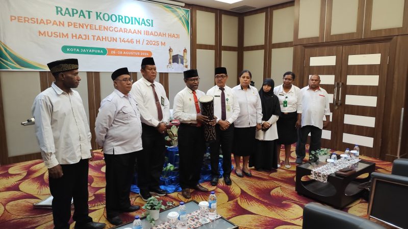 Papuaterdepan, Jayapura- Kementerian Agama (Kemenag) Provinsi Papua menggelar Rapat Koordinasi (Rakor) Persiapan Penyelenggaraan Ibadah Haji tahun 2025 di salah satu Hotel di Jayapura,Papua Senin (26/8/2024). Kegiatan ini akan berlangsung selama tiga hari, dan dihadiri oleh para penyelenggara haji dan umroh serta unsur peserta terkait lainnya, dari Kantor Kementerian Agama Kabupaten/Kota di Provinsi Papua, kegiatan ini berlangsung hybrid yaitu daring dan luring.