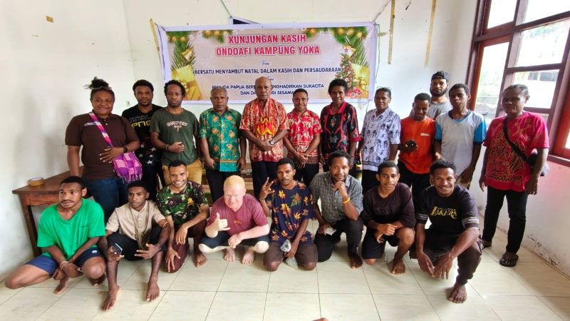 “Dalam suasana Natal tahun ini, kami dari tokoh adat, tokoh agama, dan tokoh pemuda yang ada di Kampung Yoka memberikan sedikit bantuan kepada adik-adik di asrama sebagai bentuk kepedulian dan kasih Natal,” kata David Mebri.