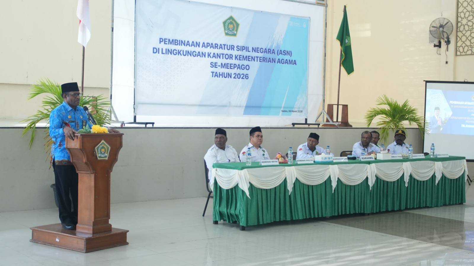 Nabire,Papuaterdepan.com – Kepala Kantor Wilayah (Kanwil) Kementerian Agama (Kemenag) Provinsi Papua, Klemens Taran, secara resmi membuka kegiatan Pembinaan Aparatur Sipil Negara (ASN) se-wilayah Meepago di Kabupaten Nabire, Jumat (6/3). Dalam arahannya, Klemens memberikan instruksi tegas terkait konsolidasi organisasi dan kedisiplinan pegawai.
