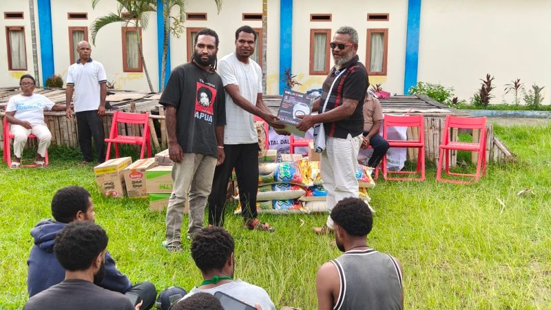 Jayapura,Papuaterdepan.com – Pemerintah pusat melalui tokoh adat Kampung Waena melakukan kunjungan kasih dengan menyalurkan bantuan sembako kepada mahasiswa di Asrama Putra Mahasiswa Lanny Jaya, Kota Jayapura, Papua, dalam rangka menyambut Natal dan Tahun Baru 2025, Senin (15/12).